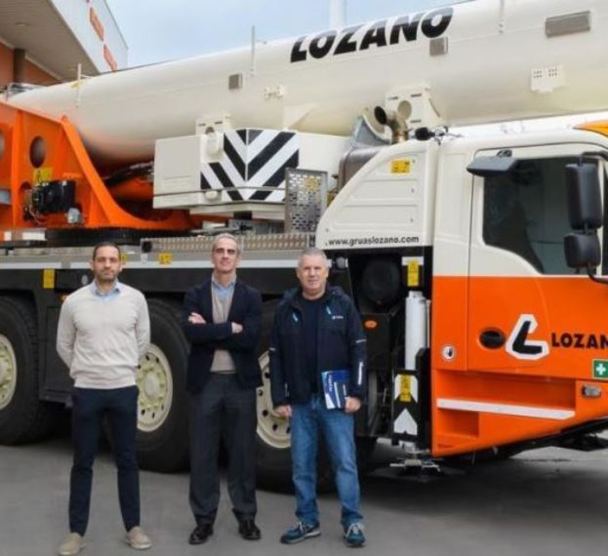 Im Einzelnen (v.l.): Fernando Gonzalez und Salvador Artés von Grúas Lozano mit Gustavo Rafael Cortina von Tadano Spanien & Portugal------------------------------Der spanische Kran- und Arbeitsbühnenvermieter Grúas Lozano hat einen neuen All-Terrain-Kran vom Typ Tadano AC 4.080-1 mit 80-Tonnen Traglast in Empfang genommen.--------------------------Der vierachsige AC 4.080-1 verfügt über einen siebenteiligen 60 Meter langen Ausleger und ist mit einer 8,5 bis 16 Meter langen Doppelklappspitze ausgestattet. Dadurch erreicht er eine maximale Auslegerhöhe von fast 79 Metern und eine Steilstellung von 40 Grad. Der Kran kann bis zu 9,3 Tonnen Gegengewicht bei einer Achslast von 12 Tonnen mitführen.-------------------------------------Das Unternehmen wurde 1959 von Juan Lozano López gegründet. 1991 nahm es Arbeitsbühnen ins Portfolio auf. Heute hat es seinen Hauptsitz in Alcalá de Guadaíra bei Sevilla und unterhält fünf weitere Standorte für Kran- und Höhenzugangstechnik, darunter Granada, Cádiz, Málaga, Huelva und Badajoz, sowie drei spezialisierte Bühnendepots in Almería, Córdoba und Jaén. Die All-Terrain-Kranflotte umfasst Tragfähigkeiten von 35 bis 700 Tonnen sowieGittermastkrane bis 450 Tonnen. Die Bühnenflotte 600 Einheiten, darunter Ausleger- und Scherenarbeitsbühnen, Raupen-, Mast- und Anhängerarbeitsbühnen sowie kleine LKW-Bühnen, gekrönt von einer 43-Meter-Boom. Es betreibt außerdem ein IPAF-Schulungszentrum.