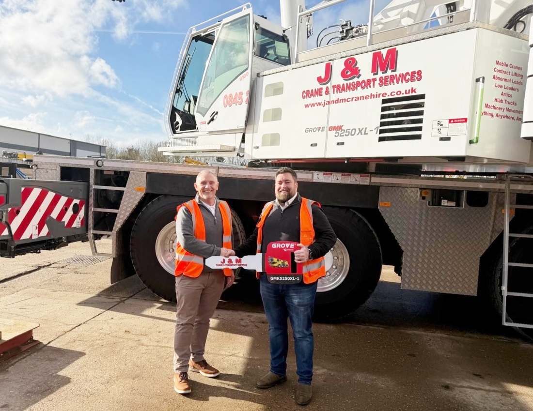 UK-Vermietungsunternehmen J&M Crane & Transport hat einen Grove GMK5250XL-1 All-Terrain-Kran mit 250 Tonnen in Betrieb genommen, der als Flaggschiff der Flotte fungiert. Der GMK5250XL-1 verfügt über einen Hauptausleger mit acht Abschnitten von 78,5 Metern, ergänzt durch eine 18 Meter lange Bi-Fold-Schwenkverlängerung, die mit zusätzlichen Inserts auf 34 Meter erweitert werden kann. Zu den Merkmalen zählen Grove’s Maxbase mit variabler Auslegergrundplatte und All-Wheel-Steuerung. Die Leistung stammt von einem emissionsobersten, Stage-V-Mercedes-Dieselmotor, der auf HVO-ready ausgelegt ist. J&M wurde in den mittleren 1950er-Jahren gegründet und hat seinen Standort in Gravesend, Kent. Die All-Terrain-Kranflotte umfasst Kranen von 35 bis 250 Tonnen, daneben einige Ladekräne, eine umfangreiche Transportflotte, Gabelstapler und bodenständige Transportgeräte. Über den Geschäftsführer von J&M, James Lawrence: „Das Geheimnis ist gelüftet, wir haben einen brandneuen Grove GMK5250XL, der neben unserem GMK5250L läuft und uns eine größere Abdeckung bietet. Vielen Dank an James Leishman und alle bei Grove, die uns geholfen haben, diesen Deal in sehr kurzer Zeit über die Linie zu bringen.“