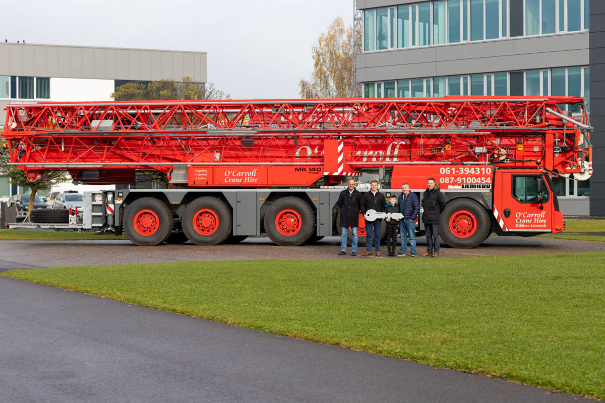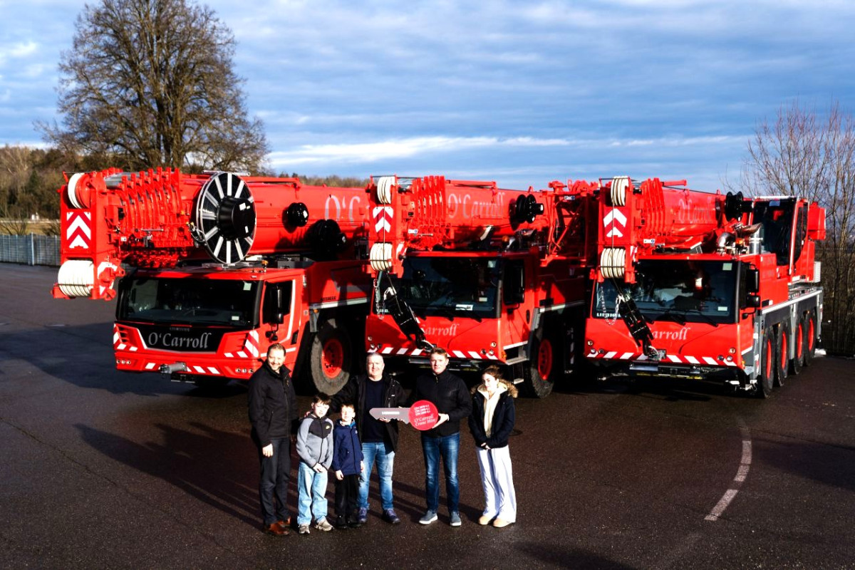 O'Carroll Haulage & Crane Hire hat die ersten drei von fünf bestellten Liebherr-Mobilkranen von Liebherr Ireland erhalten. • LTM 1070-4.2 – 70 t • LTM 1090-4.2 – 90 tDas Highlight der Lieferung ist Irlands erster LTM 1300-6.4, ein leistungsstarker 300-Tonnen-All-Terrain-Kran, der mit Liebherrs neuestem LICCON3-Steuerungssystem und einem 90 m langen Teleskopausleger ausgestattet ist und Hubhöhen von bis zu 120 m erreichen kann. Die Anschaffung dieser Krane stärkt O'Carrolls Fähigkeit, zuverlässige und vielseitige Hebelösungen für eine breite Palette von Projekten in ganz Irland anzubieten.--------------------- • LTM 1300-6.4 – 300 t---------------------------Zwei weitere Krane werden im Laufe dieses Jahres zur Flotte hinzukommen: ein LTM 1150-5.4, 150-Tonnen-Kran und ein LTM 1050-3.1, 50-Tonnen-Kran. Ein herzliches Dankeschön geht an Maurice O'Carroll und das O'Carroll-Team für ihr anhaltendes Vertrauen in Liebherr.