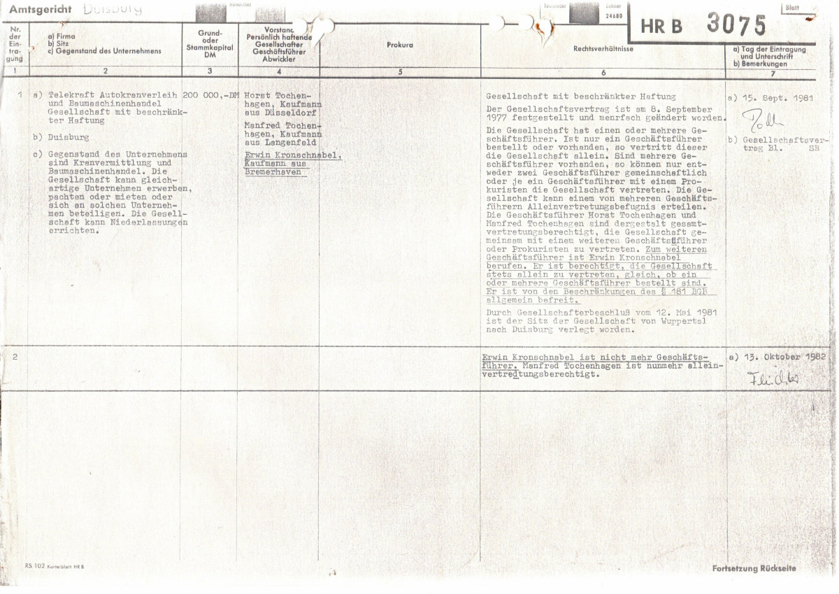Telekraft GmbH am 08.09.1977 gegründet Essen - Wuppertal gegründetLiebherr LTM 1400-7.1 Telekraft und Terca mit gleichen Wurzeln (Heydemann/Kronschnabel/ Tochenhagen/Wasel/Hagedorn,vielleicht geht noch mehr)