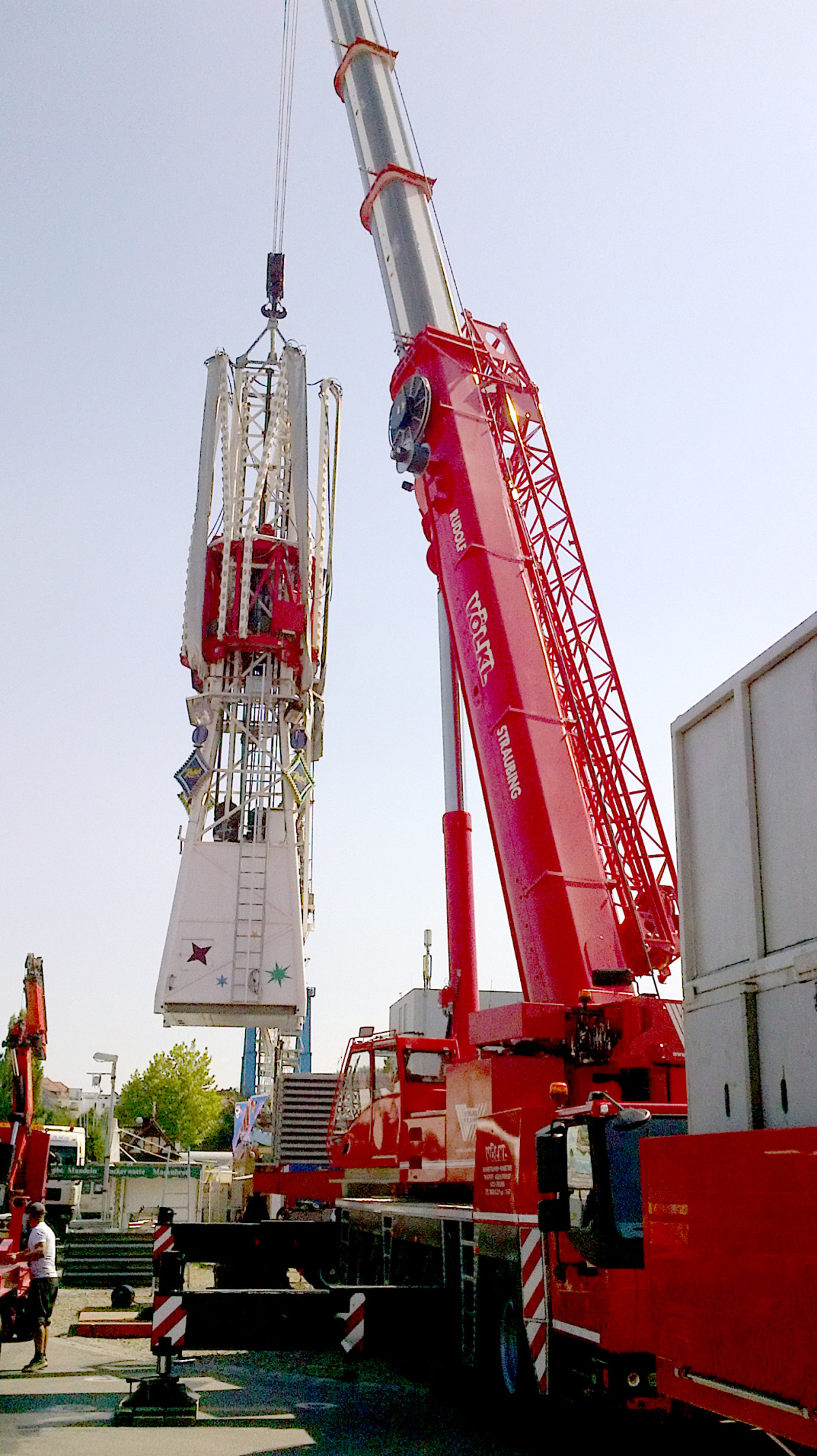 Die in Straubing ansässige Firma Kran Völkl hat den ersten Einsatz ihres neuen Grove-AT-Krans GMK5220 abgeschlossen. Der Kran mit 220 t Tragfähigkeit kam im August an und wurde sofort zum Aufbau zweier Fahrgeschäfte beim örtlichen Gäubodenvolksfest eingesetzt. Der GMK5220 ist jetzt der größte Kran in Völkls Flotte mit 12 Kranen. Qualität und Leistungsvermögen des Krans eignen sich insgesamt ideal für die wachsenden Bedürfnisse des Unternehmens, wie Besitzer Rudolf Völkl erläutert: „Wir haben Grove stets als Qualitätsmarke betrachtet“, so Völkl. „Wir besuchten ihr Werk in Wilhelmshaven und sahen ihren Fertigungsprozess und die breite Kranpalette mit eigenen Augen. Unser Besuch bot Grove auch ein fundiertes Verständnis unserer Bedürfnisse, damit sie herausfinden konnten, welches Produkt sich am besten für unsere geeigneten Einsätze eignen würde. Der GMK5220 ist der perfekte Kran für uns.“ Der erste Einsatz des GMK5220 erfolgte beim bayrischen Gäubodenvolksfest, welches dieses Jahr sein 200-jähriges Jubiläum feierte. Die Geschwindigkeit der Kranabläufe wurde sofort auf die Probe gestellt, da der Auftrag den Aufbau zweier riesiger Fahrgeschäfte in zwei Tagen vorsah. Eines der Fahrgeschäfte, die „Rakete“, ist ein 64 m hoher Turm, dessen Bestandteile mehr als 28 t wiegen. Völkls Team berichtete, dass der Auftrag ohne Zwischenfall ausgeführt wurde; Nach Ende des zehntägigen Volksfestes kehrte es zum Festplatz zurück und zerlegte die beiden Fahrgeschäfte wieder, was nur einen Tag in Anspruch nahm. Der Erfolg dieses ersten Projekts beeindruckte Völkls Arbeitskräfte derart, dass sie einmütig meinten: „Der Chef hat in das richtige Produkt investiert.“ Groves GMK5220 ist ein fünfachsiger AT-Kran mit einem 68-m-Hauptausleger, der mit einem Hilfsausleger auf 105 m verlängert werden kann. Die Firma Völkl wurde 1932 gegründet und ist eine der Branchenriesen für Baumaschinen in Niederbayern. Ihre Flotte aus 12 Kranen wird durch 90 weitere Fahrzeuge unterstützt, die auf drei Standorte verteilt sind. Das allseits beliebte Gäubodenvolksfest, das vom 9. bis 19. August stattfand, zog mehr als 1,3 Millionen Besucher an.
