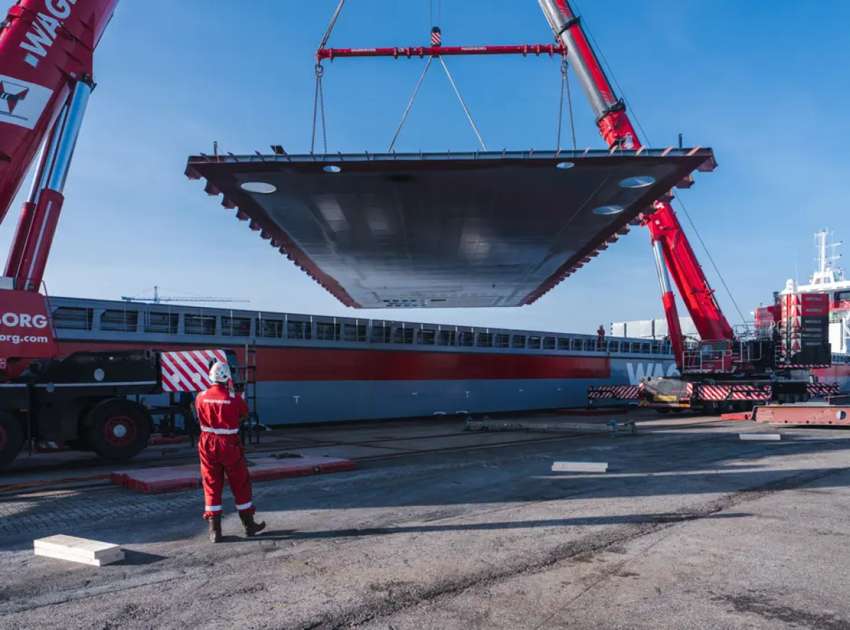 Die Konstruktion des ersten in Europa gebauten CO₂-Trägers hat einen bedeutenden Meilenstein erreicht: Die Deckhatches wurden installiert. Diese Hatches bedecken und schützen die CO₂-Tanks, die dazu ausgelegt sind, rund 5.000 Tonnen flüssiges CO₂ zu transportieren. Die Hatches wurden in einer Werft in Emden unter der Aufsicht von Royal Niestern Sander hergestellt. Am Montag, dem 19. Januar, lud Wagenborg die Hatches in Emden auf den Ponton Wagenborg Barge 15 und zog sie zum Wagenborg-Terminal in Delfzijl. Am folgenden Tag entluden zwei Wagenborg-Mobilkrane – eine 500-Tonnen-Kran und eine 100-Tonnen-Kran – die vier Hatches vom Ponton und setzten sie auf das Terminals-Ufer. Nachdem der Ponton abgefahren war, wurde der CO₂-Träger Carbon Destroyer 1 am Kai positioniert. Die gleichen Krane hobten dann die Hatches vom Kai und montierten sie auf dem Schiff. Diese Operation erforderte eine präzise Koordination zwischen mehreren Teams und Einsatzmitteln, um Sicherheit und Effizienz während des Prozesses zu gewährleisten. Dieser Schritt markiert einen wichtigen Moment beim Zusammenbau des CO₂-Trägers und demonstriert die Komplexität der Integration großer Bauteile unter strengen Sicherheits- und Qualitätsstandards. Die Installation der Deckhatches ist ein kritischer Meilenstein bei der Vorbereitung des Schiffes auf seine geplante Rolle im CO₂-Transport. In den kommenden Wochen wird das Schiff weiter ausgerüstet, einschließlich der Inbetriebnahme aller Bordanlagen und Maschinen. Diese Aktivitäten sind entscheidend, um das Schiff für seemäßige Erprobungen, die für März geplant sind, einsatzbereit zu machen. Das CO₂-Trägerprojekt stellt eine technische Innovation im Seeverkehr dar, die darauf abzielt, Initiativen zur CO₂-Abscheidung und -Speicherung zu unterstützen. Indem der sichere und effiziente Transport von flüssigem CO₂ ermöglicht wird, wird das Schiff wesentlich zu Europas Klimazielen beitragen.